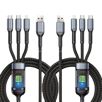 1.2M Nylon Jacket Braided Type-C Micro for iPhone LED Display Cable Fast Charging Type-C Charger for Phone 100W 3-in-1 Cable