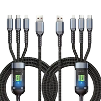 1.2M 나일론 재킷 꼰 Type-C 마이크로 아이폰 LED 디스플레이 케이블 전화 100W 3-in-1 케이블 용 고속 충전 Type-C 충전기
